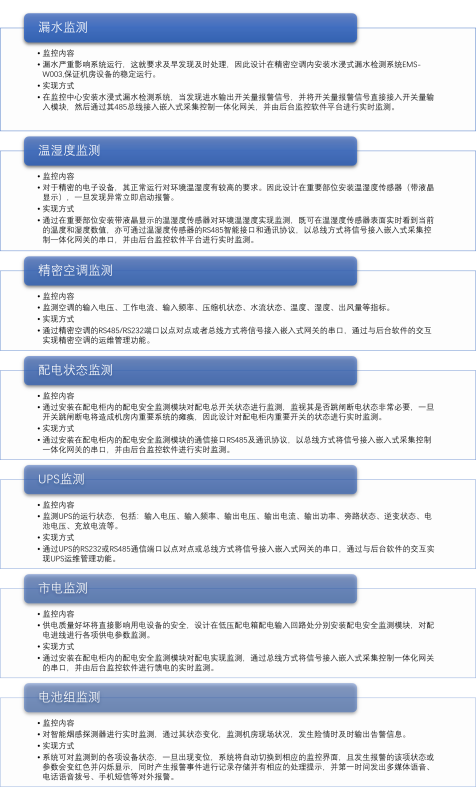主要对机房的动力和环境相关设备运行状态进行采集、展示、报警和分析等。